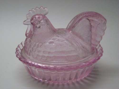 There on the kitchen table was the pink glass hen with a dent in the mound of coins. How did she know? Seems I had left the china cabinet door open.